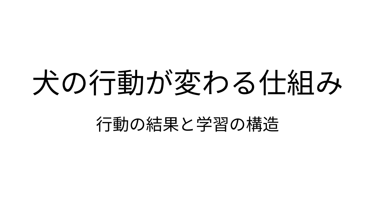 行動の背景となる学習の構造については、犬の行動が変わる仕組み:行動の結果と学習の構造 にまとめています。