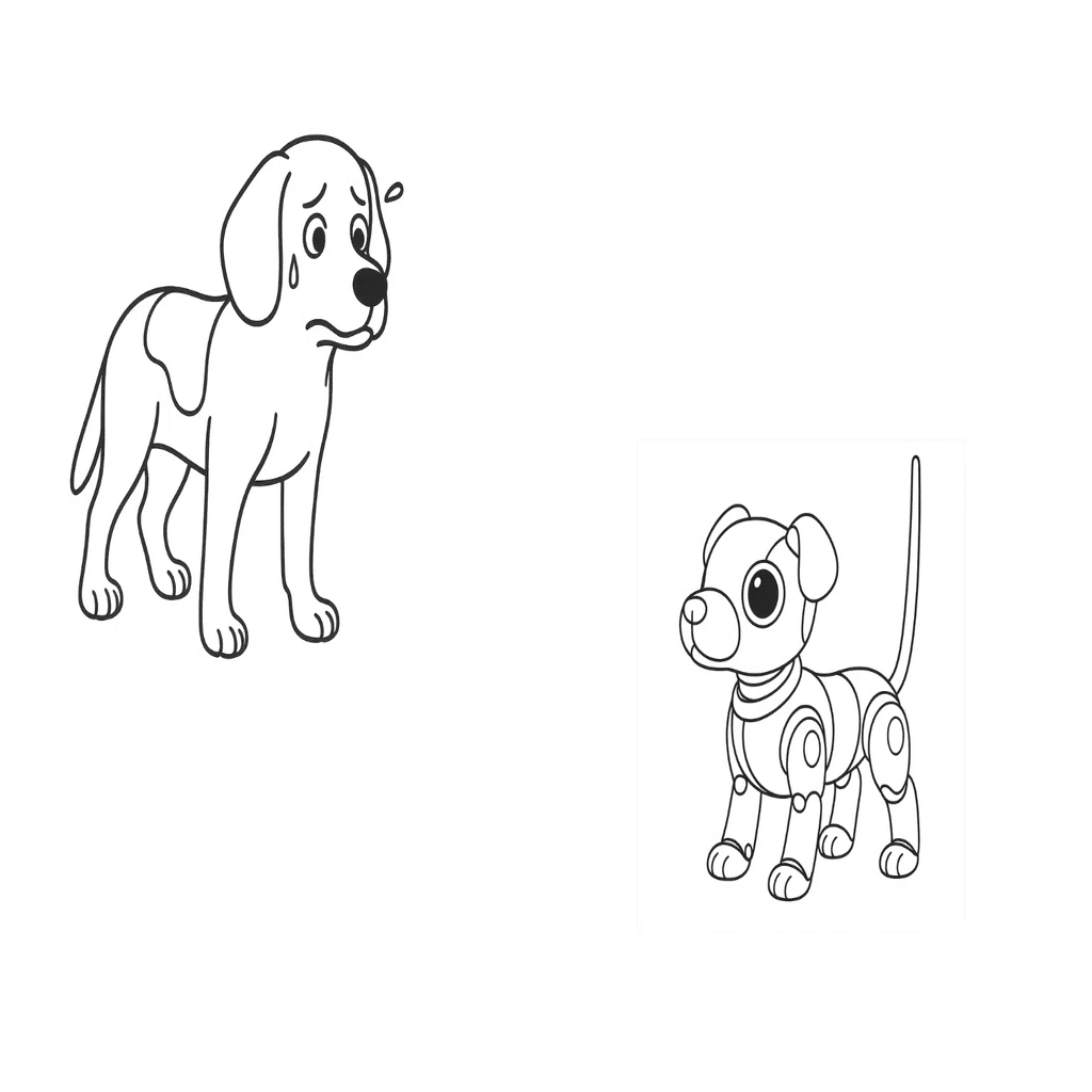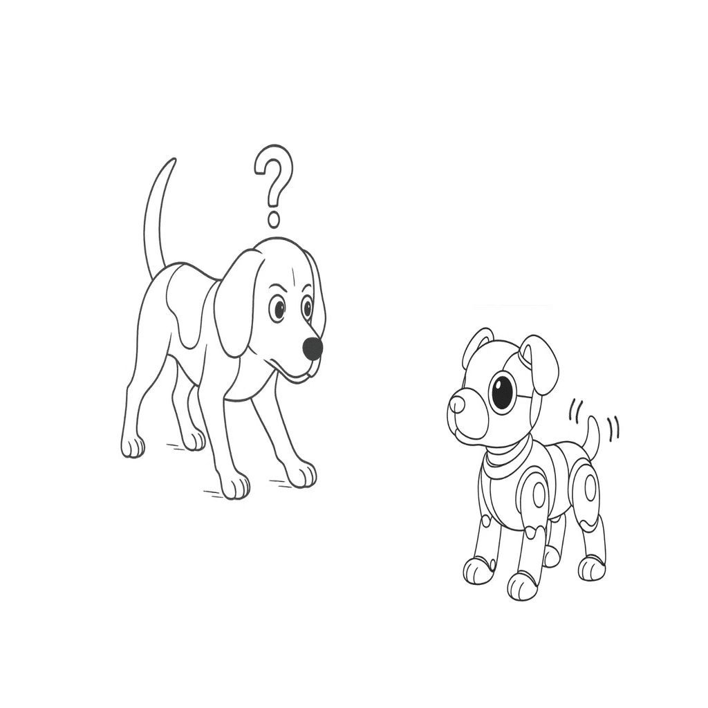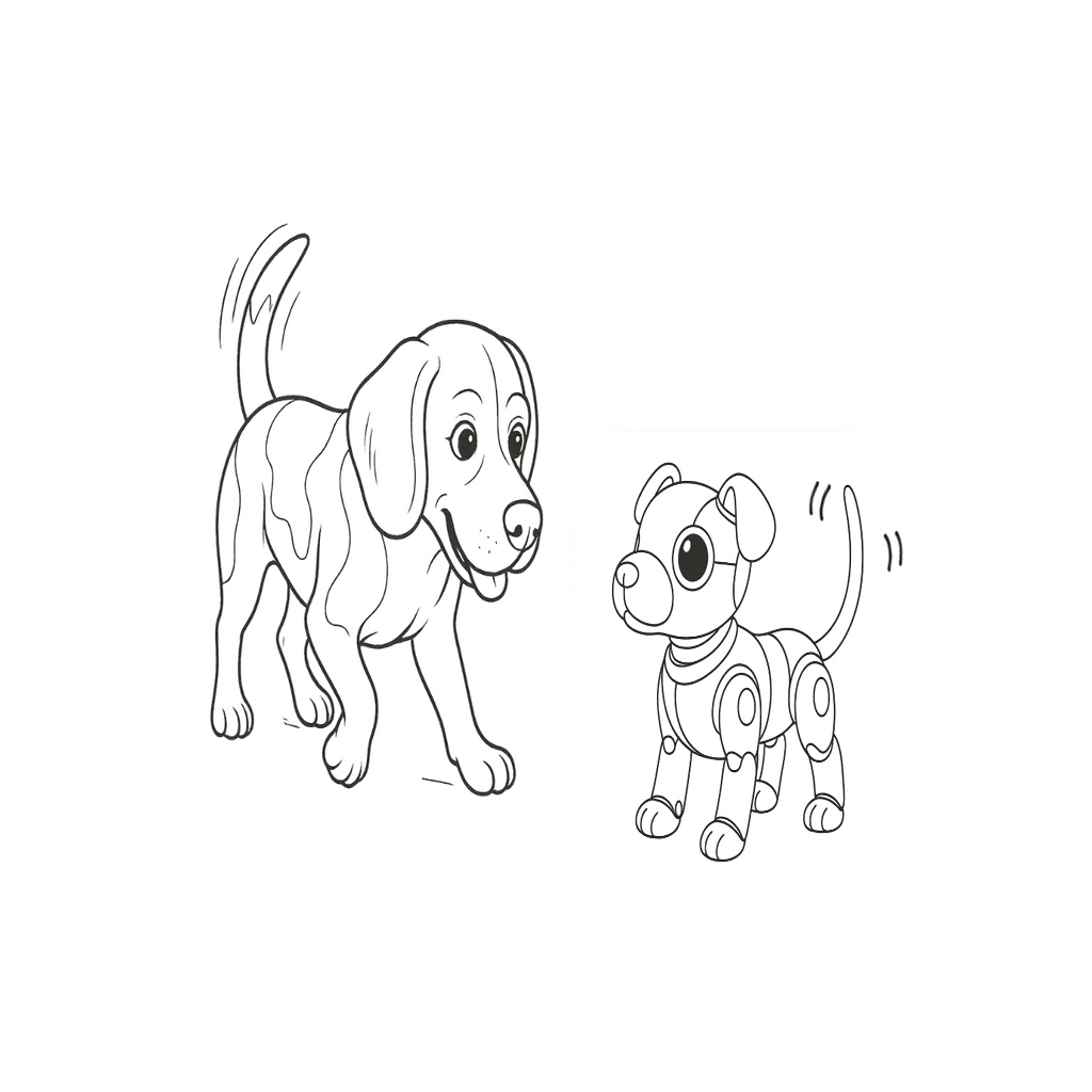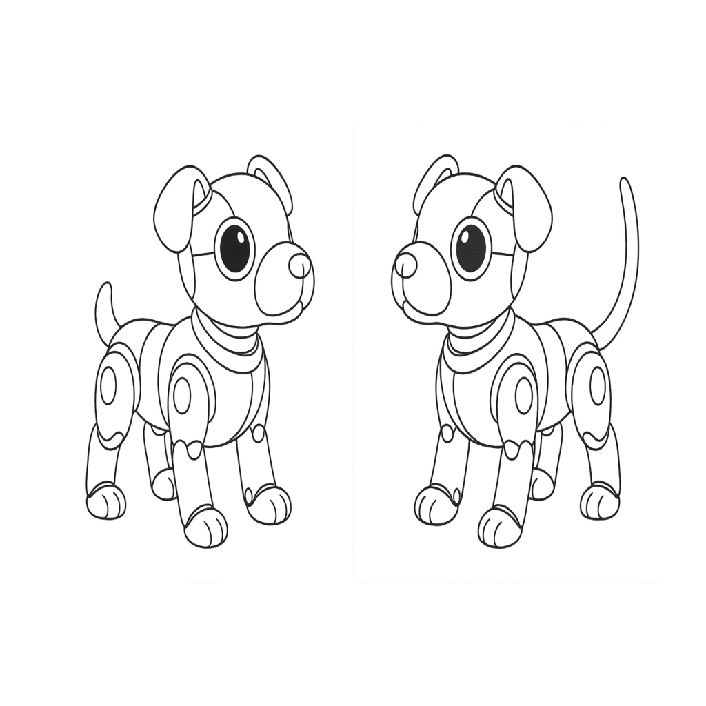 短くてずんぐりした尾を持つロボット犬と、長い(普通の)尾を持つロボット犬です。